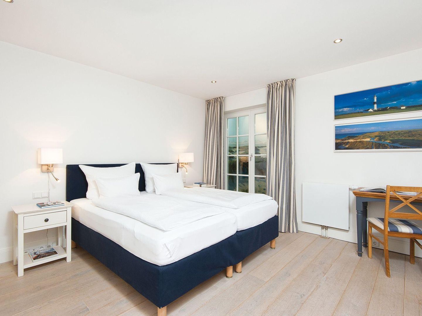 Auch das Untergeschoss überrascht mit Behaglichkeit: Zwei hübsche Doppelschlafzimmer, viel Stauraum in den Einbauschränken und ein geräumiges Duschbad bieten ausreichend Platz für Familie und Gäste. Das besondere Highlight ist die Dampfsauna – perfektes Syltfeeling und pure Entspannung, ganz unabhängig vom Wetter.